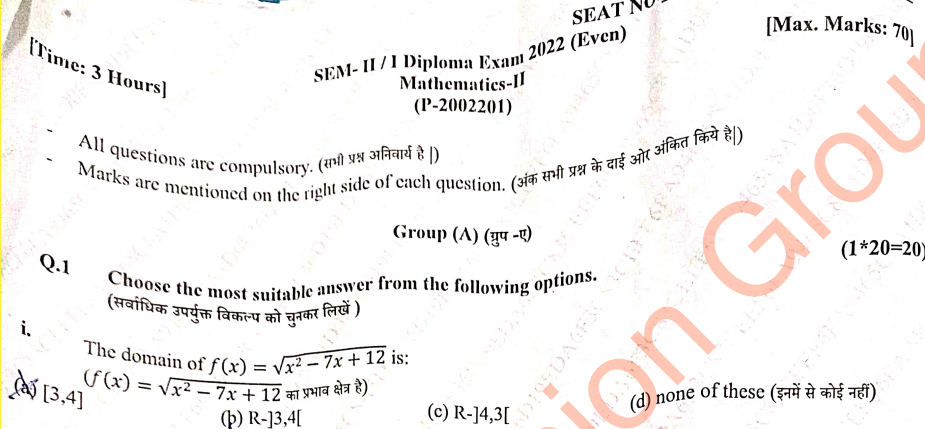 Mathematics 2 Question Paper Exam hed in Nov 2022